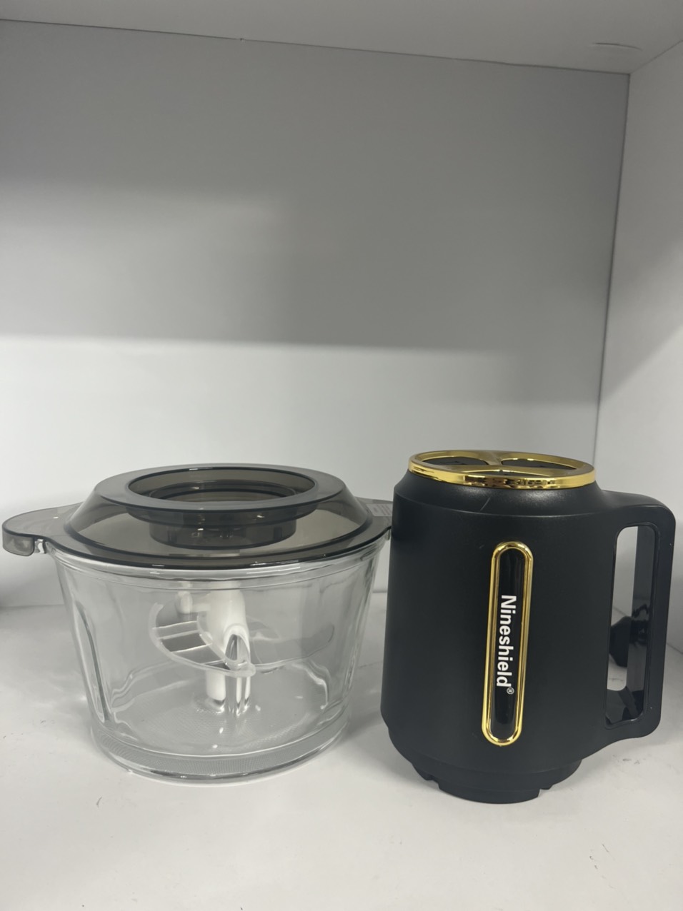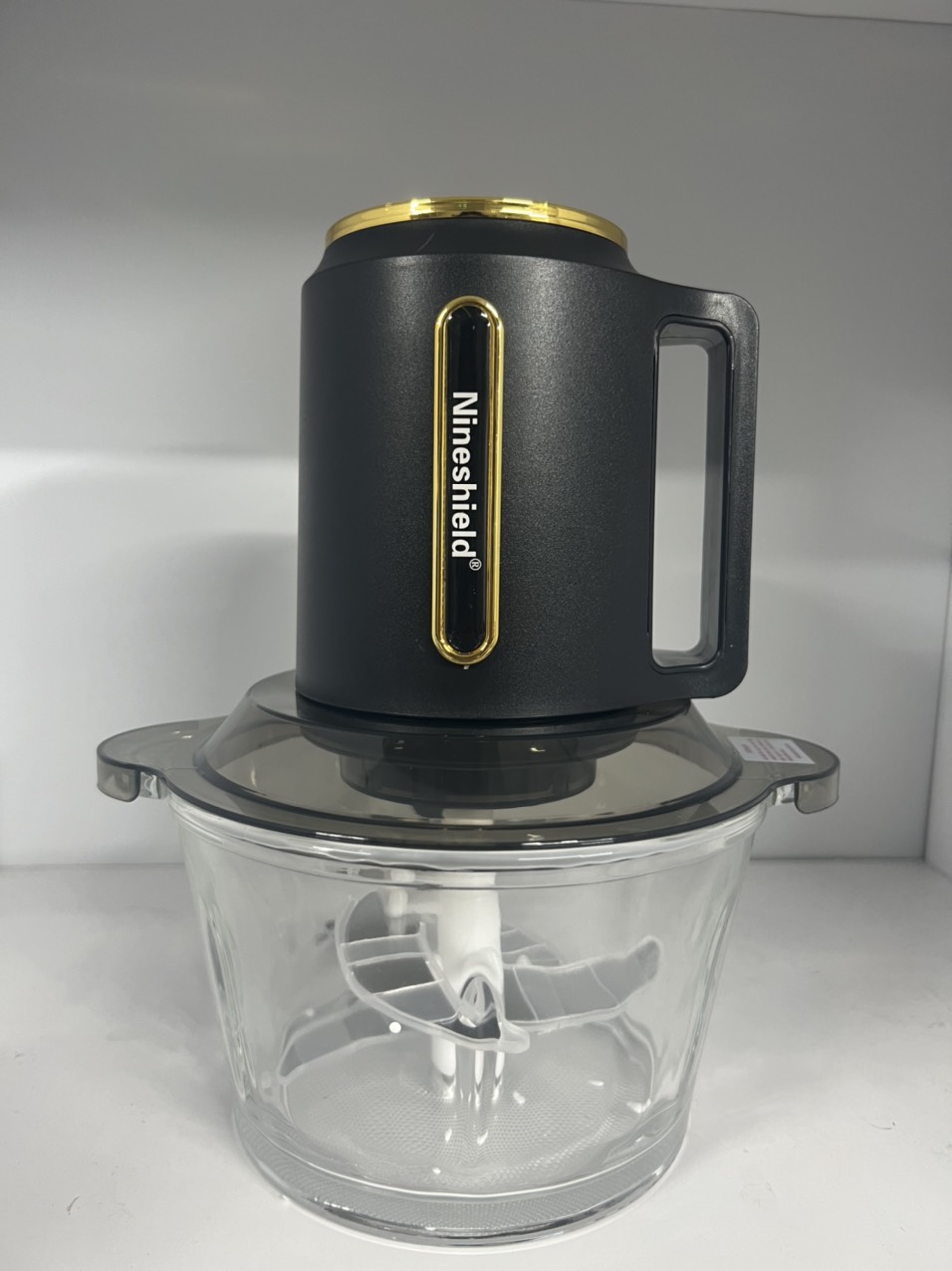 - Máy xay thịt Nineshield KB-M6-1 không chỉ gây ấn tượng với thiết kế màu đen hiện đại, mà còn nổi bật với cối xay bằng chất liệu thủy tinh cao cấp, đảm bảo an toàn cho sức khỏe.
