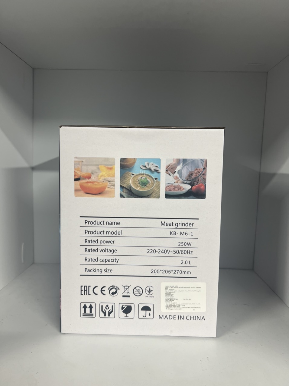 - Kích thước nhỏ gọn 20.5 x 20.5 x 27cm và dung tích lớn 2L giúp bạn dễ dàng xay lượng thịt lớn, phù hợp với mọi không gian bếp.